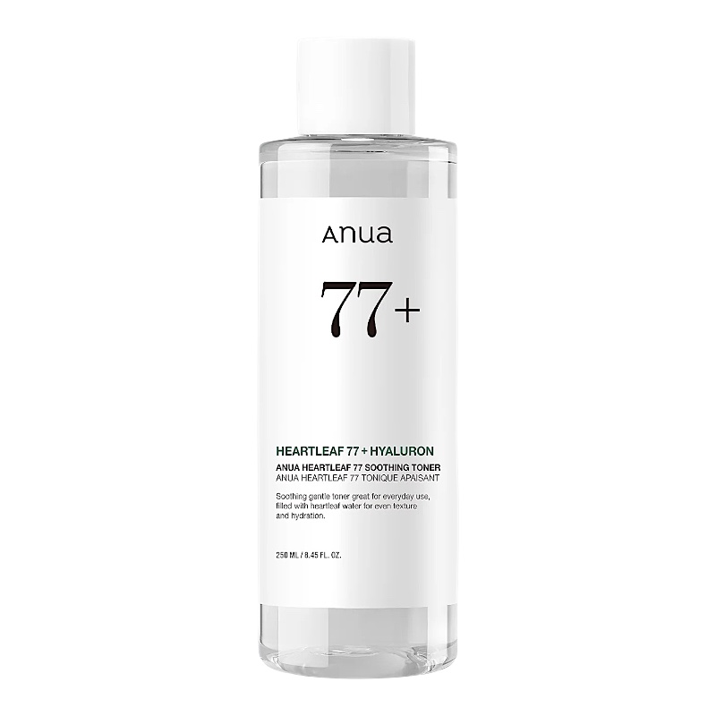 Der Anua Heartleaf 77% Soothing Toner ist ein erfrischender, leichter Gesichtstoner mit einem hohen Anteil an Houttuynia Cordata (Heartleaf), einer Heilpflanze mit stark entzündungshemmenden und antibakteriellen Eigenschaften. Er hilft, gereizte Haut zu beruhigen, überschüssigen Talg zu regulieren und die Poren zu verfeinern.